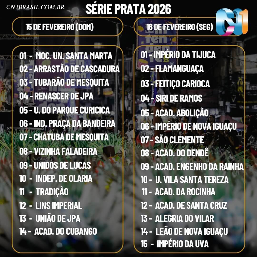 Além das 29 escolas de samba da Série Prata, que disputam vagas para desfilarem na Avenida Marquês de Sapucaí em 2027, estarão na avenida mais 25 agremiações divididas no Grupo 1 da Federação dos Blocos Carnavalescos, Grupo de Avaliação e Série Bronze.