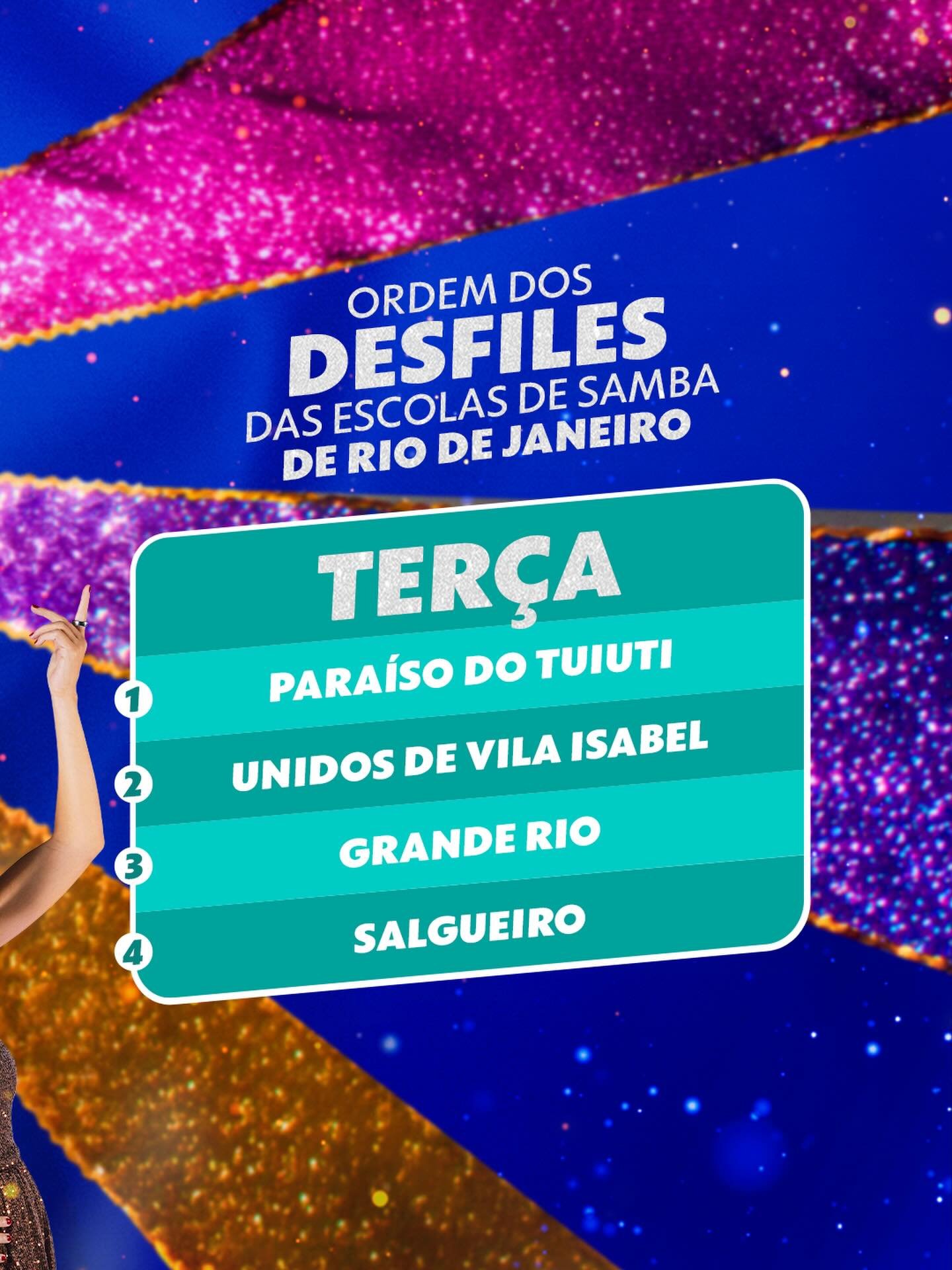 Terminam nesta terça-feira, dia 17 de fevereiro, com início às 21:45 horas os desfiles do Grupo Especial que é a elite do Carnaval do Rio de Janeiro.